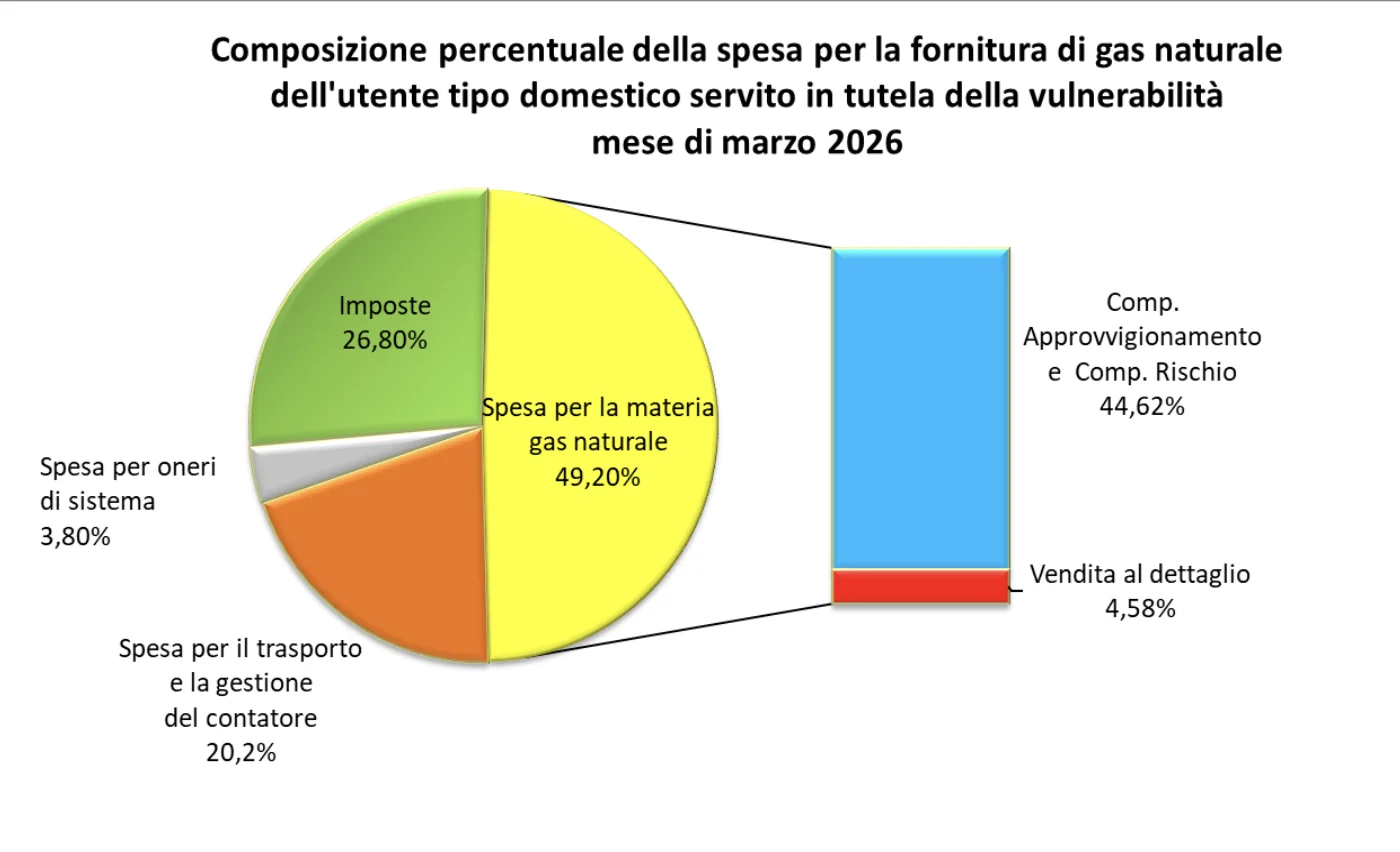 ARERA spiega che, dopo il calo di febbraio dovuto alla riduzione delle quotazioni all’ingrosso, a marzo le tensioni in Medio Oriente hanno spinto al rialzo i prezzi sul mercato PSV day ahead. La componente CMEM,m (costo di approvvigionamento) è stata aggiornata come media mensile del prezzo all’ingrosso italiano ed è pari a 52,12 €/MWh (o 0,557699 €/Smc). Chi sono i clienti vulnerabiliIl Servizio di Tutela della Vulnerabilità protegge chi si trova in una delle seguenti condizioni: